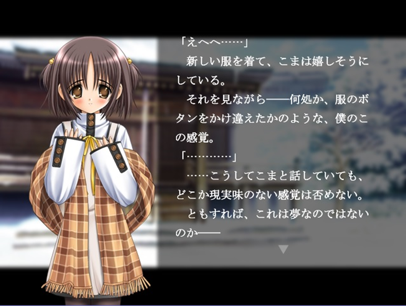 縁結びの神である「由(ゆえ)」は主人公の願いである妹との再会をかなえるため、ご神体にこまの魂を封じ込め彼女は再び主人公の前に姿をあらわす。